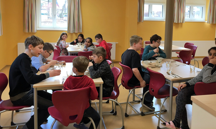 Ganztagesschule - Essen im neuen Speisesaal, Freizeitgestaltung