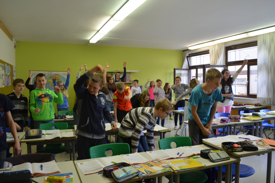Die Schüler beim täglichen Wachrütteln Foto © Karin Scherf-Kachelmaier